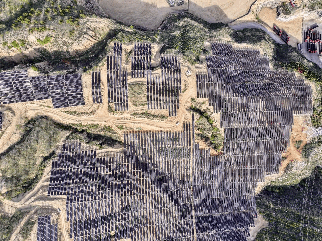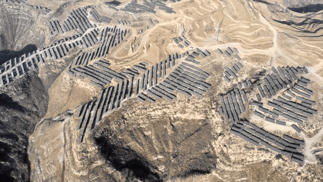 项目团队针对狭窄山路运输瓶颈,修筑了50余公里临时便道破解难题;自主研发“直流电缆防线器”,通过智能张力控制系统和自动排线装置实现安全高效敷设;运用无人机完成支架、光伏板等组件的高空精准配送;采用柔性支架技术,实现80%以上山地光伏组件“爬陡坡、跨沟壑”式布设,大幅提升土地利用率;通过科学划分施工段,实现土方开挖、桩基施工等工序立体交叉作业,同步推进光伏区安装、升压站建设、集电线路铺设三大环节。最终,在70天内高效完成41个光伏方阵、302台逆变器安装及55公里集电线路敷设,获得业主高度认可。