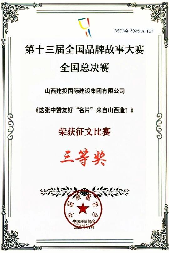 作为贯彻落实《质量强国建设纲要》《关于新时代推进品牌建设的指导意见》的全国性赛事,第十三届全国品牌故事大赛汇聚全国优秀企业力量,旨在宣传展示中国企业全面贯彻新发展理念、坚持高质量可持续发展、发挥品牌引领作用的经验和故事,是彰显企业品牌价值的重要平台,在国内品牌领域具有高度公信力与广泛影响力。大赛包括演讲比赛、征文比赛、微电影比赛和短视频比赛四种形式,包含科技创新、消费升级、卓越质量、责任担当、文化传承、品牌出海六个子主题。经过决赛评选,三建集团《追光路上 逐梦前行》、静态交通公司《出行的幸福感》荣获微电影比赛二等奖,建工集团《远征》荣获微电影比赛三等奖,国际建设集团《这张中赞友好“名片”来自山西造!》荣获征文比赛三等奖。