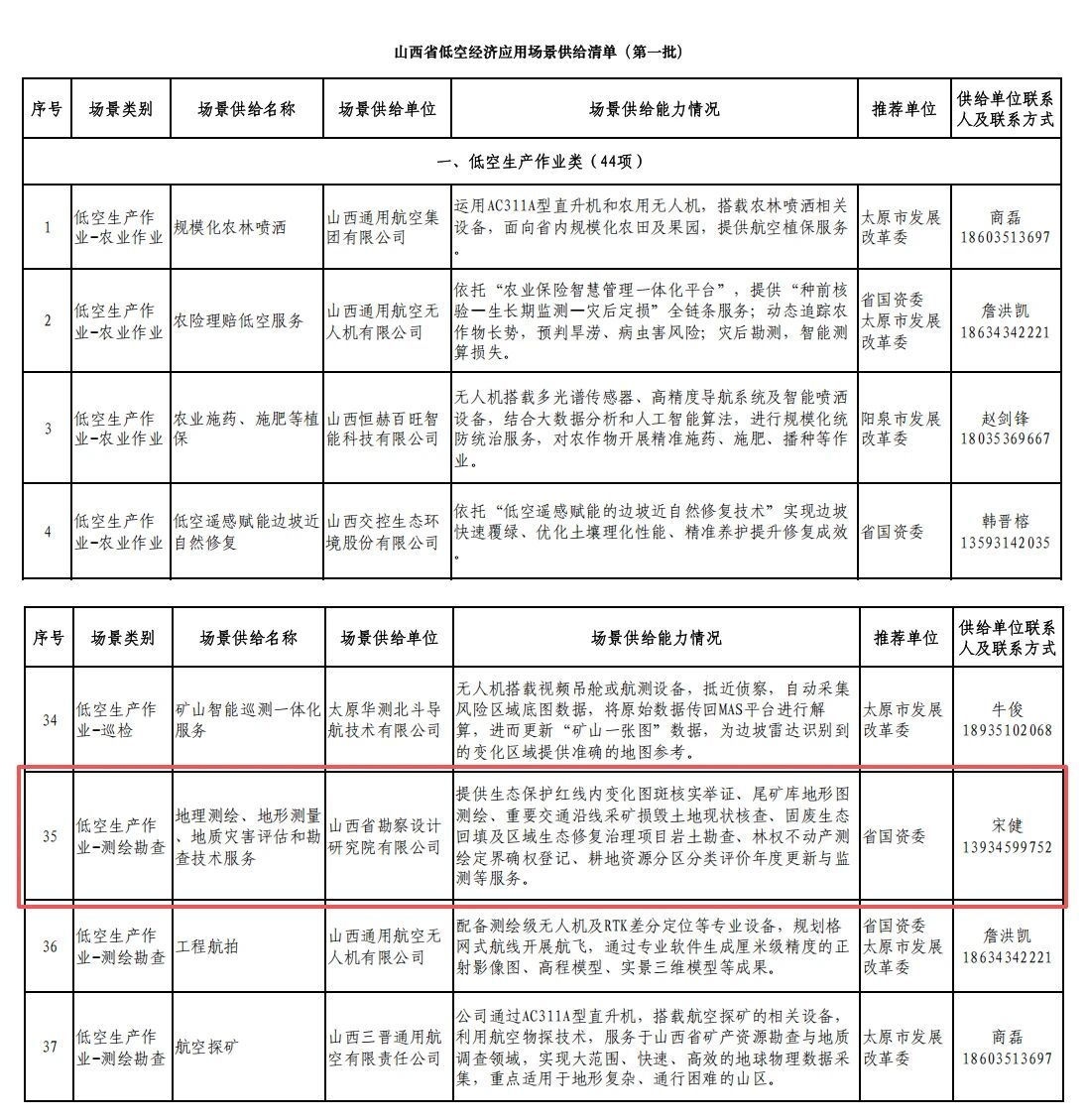 近日,山西省发展和改革委员会正式发布山西省第一批低空经济应用场景供给清单。山西建投勘察院公司低空技术服务成功入选。这一成果彰显了集团创新实力,更是集团主动布局低空经济新赛道、推动传统产业数字化转型的关键实践。