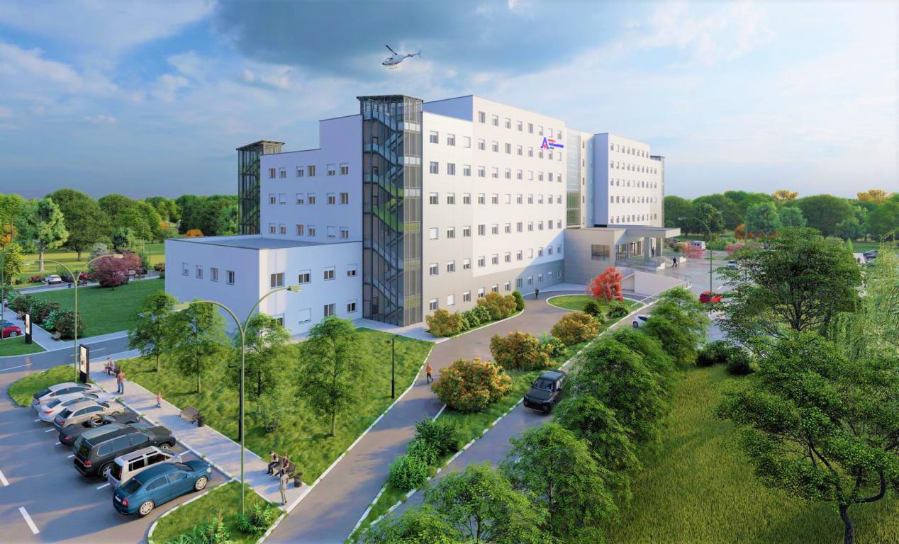 波黑多博伊医院新院建设项目是集团首个欧洲地区新建综合医院项目,也是中国企业在中东欧地区承包建设的第一个“交钥匙”医疗工程项目。项目采用EPC+F(设计、采购、施工+融资)模式,承包范围包括土建及装修、给排水及消防、通风与空调、医疗气体、强弱电、智能化、信息化建设、家具家电配套、医疗设备及医疗家具、医护及病患服装配套、室外工程及景观、外网道路建设等,主体总建筑面积约28500平方米、床位数约486张、标准洁净手术室8间。