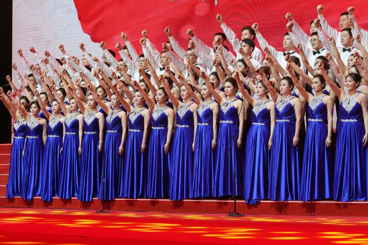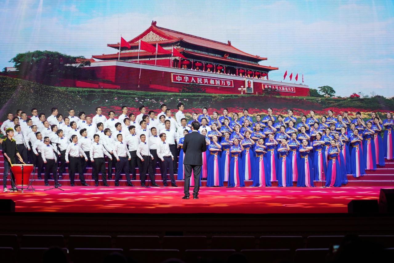 下午2点30分,一场视觉与听觉的饕餮盛宴,在由集团总部等6家单位联合演唱的《在灿烂的阳光下》中拉开帷幕。随后《羊角花开》《灯火里的中国》《我和我的祖国》《领航》……一曲曲脍炙人口、传唱至今的红色经典歌曲,以领唱、对唱、声部轮唱、伴舞、朗诵、情景合唱等多样形式呈现,歌颂着党和国家发展的光辉历程和取得的伟大成就,唱响了建投人不忘初心、牢记使命,整装再出发的豪迈激情,《山西建投之歌》作为每支队伍必唱曲目,各参赛队伍以“不一样”的表达方式,深情演绎企业70年薪火相传坚守不变的奋斗梦想和建投人砥砺奋进、开拓创新的爱企之心。