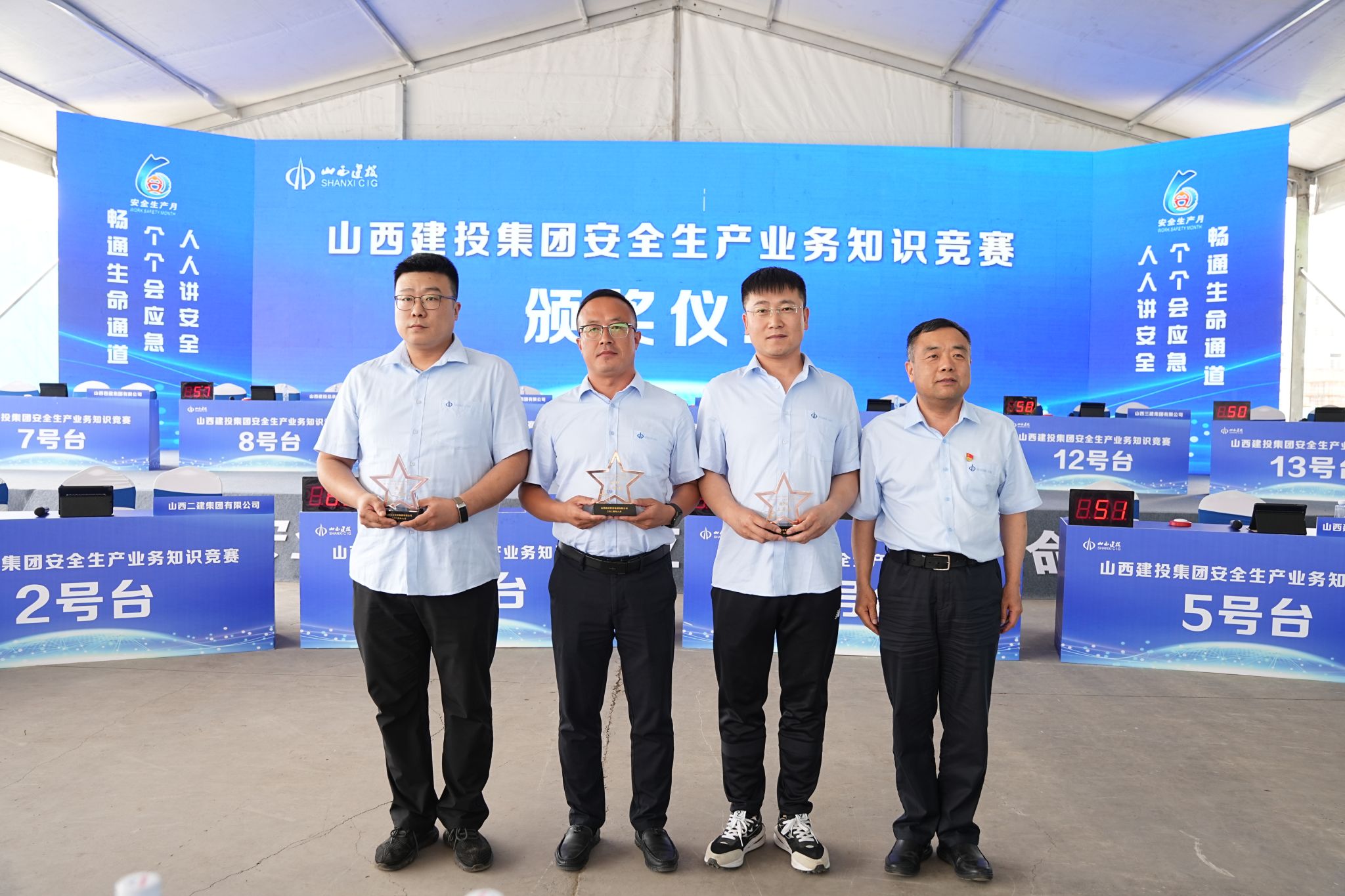 以赛促学,安全入脑。理论考试中,13家施工类子企业组织293名分公司经理,1945名项目经理,2494名项目专职安全员进行自学自考。通过各单位推荐+随机抽选的形式,建投集团组织63名分公司经理,130名项目经理,266名项目专职安全员参加闭卷考试,并根据考试成绩评定出个人一、二、三等奖。