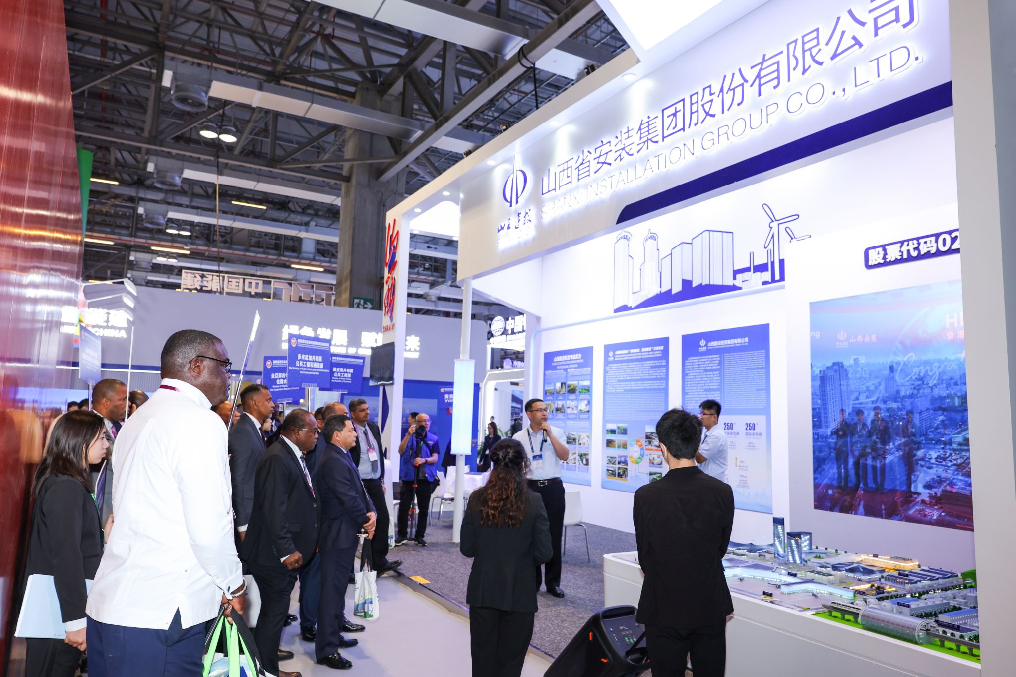 建投集团展厅以“绿色低碳 智慧建造”为主题,通过重点展示企业境外电力、冶金、钢结构、石油化工、煤化工工程建设情况,房建、市政、机电专业优势,机场工程、轨道交通工程成果以及山西·潇河新城分布式能源智慧供能案例和零碳机场建设方案,全方面、立体化呈现企业以全产业链优势做强工程承包、推进投资建设运营“一体化”、打造国际供应链服务体系平台,促进绿色创新和数智转型,投身“一带一路”建设的生动实践。
