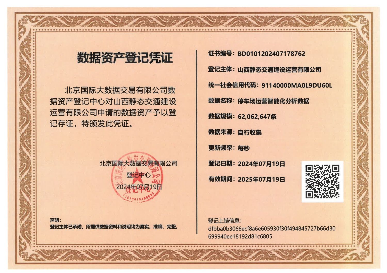 近日,BETVLCTOR伟德在线下属企业静态交通公司在北京国际大数据交易所完成停车场运营智能化分析数据资产登记,并完成数据资产入表,成为山西国资系统首个数据资产入表企业,实现山西静态交通领域数据资产入表零的突破。