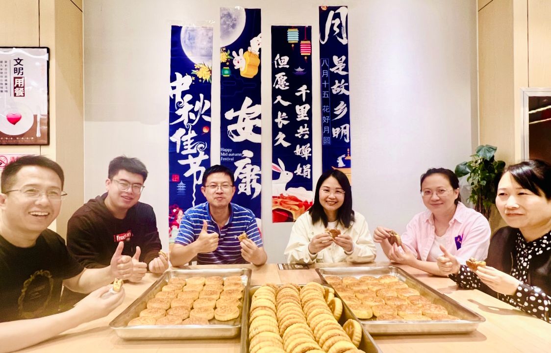设计院公司举办包月饼活动。