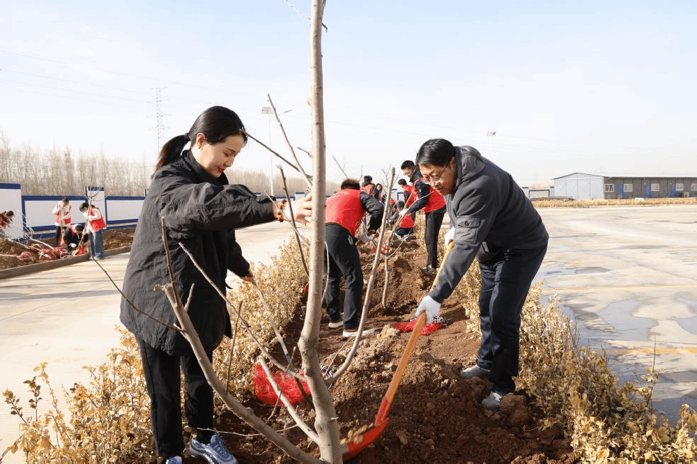 与此同时,三建集团也在山西建筑产业现代化长治园区规划绿地开展植树节活动。志愿者们手持铁锹,以实际行动践行绿色发展理念,为这片土地增添绿色。