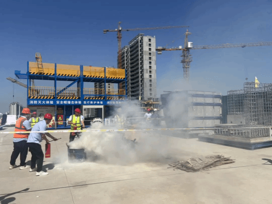 为强化应急能力,项目创新开展“情景构建+双盲演练”应急培训,不提前通知参演人员,随机设定基坑坍塌、塔吊倾斜等险情。在一次模拟高处作业坠落演练中,团队通过优化流程,将救援时间从15分钟压缩至9分钟。截至目前,已开展消防、防汛、应急救援等实战演练6场,覆盖项目全员336人次。