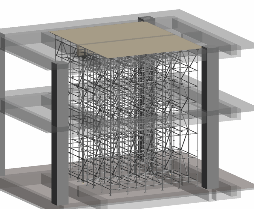 在主体结构施工中,项目团队面临多项超危工程挑战:结构挑檐外挑4米、搭设高度达19.8米,形成超高超重支模体系;中空大厅支模高度11米,空间开阔,稳定性控制要求严苛;会议室大截面梁施工超出常规限值。这些作业点技术复杂、工期紧张,安全风险极高。