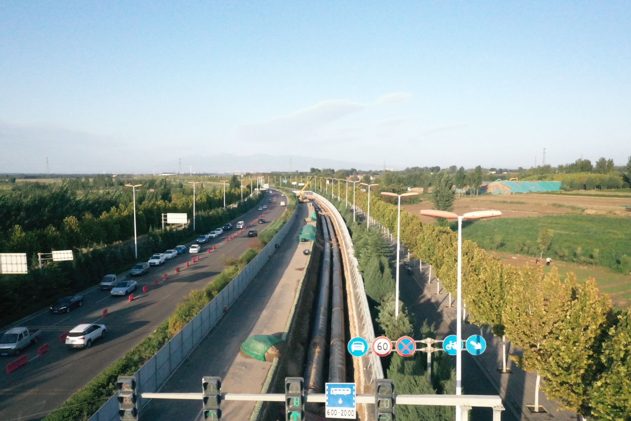 临汾市绿色能源输配项目全线从洪洞县恒富北至临汾市尧都区中心城区站,包含97千米能源输配管网和5座绿色能源输配站建设,其中山西建投一建集团负责27.8千米供热管道安装和1座能源站的建设实施。项目建成后,将为临汾市“一城三区”(洪洞县城、临汾城区、襄汾县城)提供绿色能源,预计年供热量达2206万吉焦,每年可减少二氧化碳排放508.51万吨、粉尘排放量131.6万吨,对改善区域环境质量、推动城市绿色转型具有重要意义。