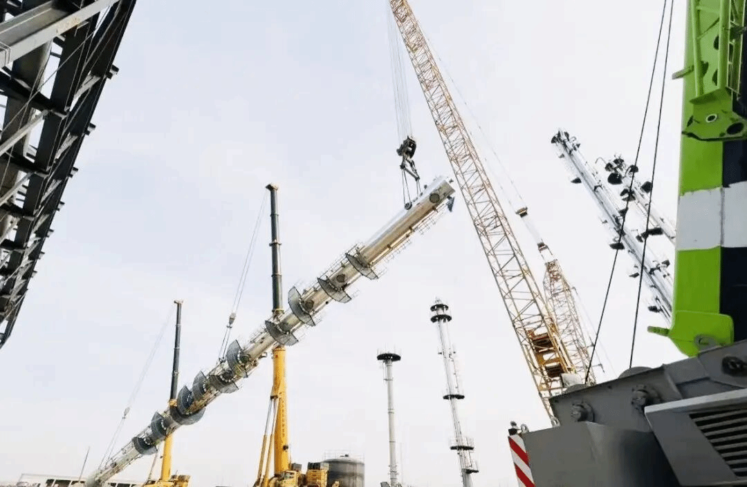 在气化装置大型设备吊装阶段,项目团队面临汽化炉、转化炉等设备在复杂框架内精准就位的挑战。通过多轮模拟演练和专项技术交底,团队创新实施“多司索指挥接替”模式:在楼顶、地面、设备基础位分设专业指挥,由总指挥统一统筹协调,根据设备吊装高度与位置分阶段交接指挥权;同时配置倒链绳索协同组,实时调整设备位置。最终所有设备安全就位,安装误差均控制在设计允许范围内,展现了团队的技术实力与协作水平。