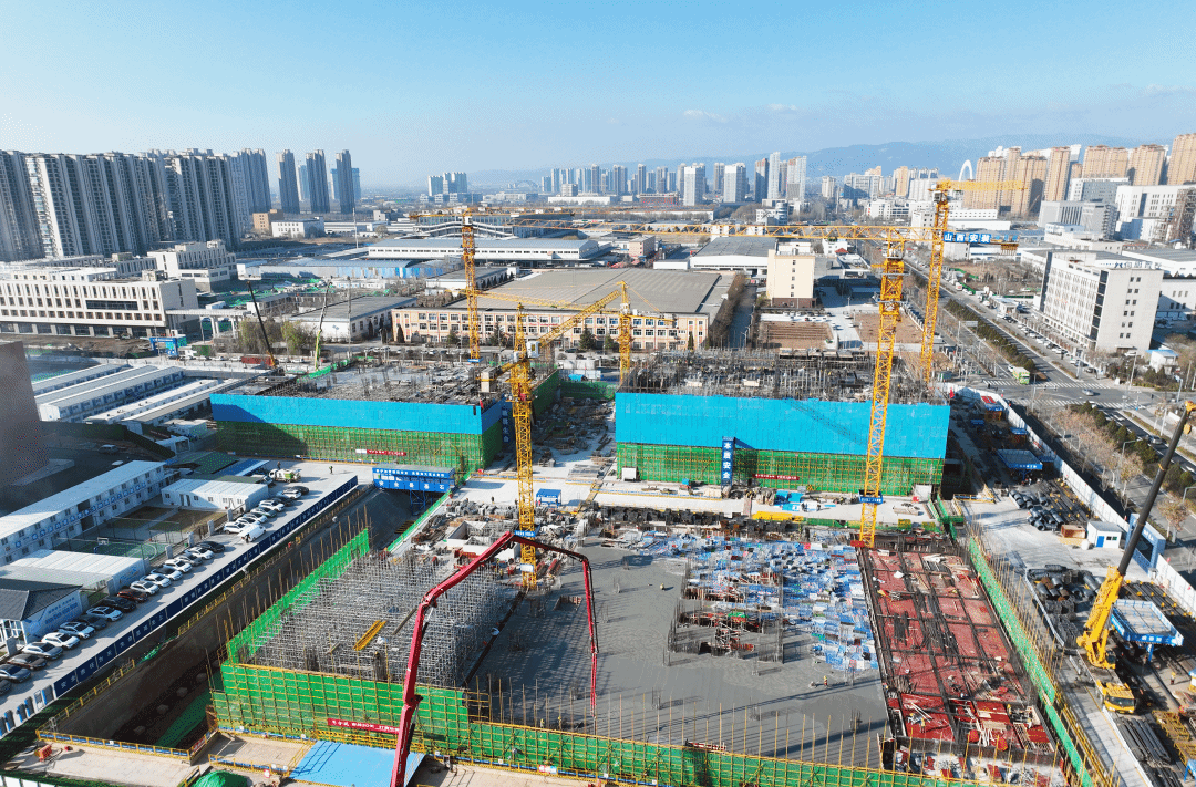 项目面临结构复杂、工期紧张、单位含钢量达普通建筑三倍等多重挑战。为此,团队将精细化理念贯穿技术攻坚全程,以技术预控和方案创新推动资源优化与效率提升。例如,在塔吊布置环节,经反复模拟验证,将塔吊数量由3台增至5台,并创新采用“承台基础+承台梁+防水板”与塔吊基础一体化承载体系,既减少独立基础施工量,也显著提升吊装效率。面对高水位、高灵敏性土质,团队运用中心岛开挖法,实施分阶段开挖与同步支护,结合出土量动态监控,仅用35天完成25万方土方外运,为后续施工争取主动。主体结构施工中,团队进一步采用“施工段划分+流水作业”模式,借助每日生产例会精准协调工序衔接,确保各环节有序推进。这一系列精细举措,最终成就了“35天完成正负零、60天实现主体封顶”的安装速度。