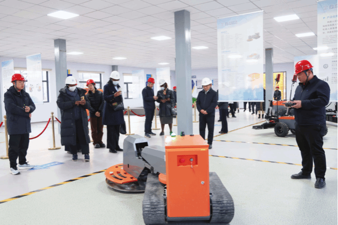 在东广场,来宾一行体验试乘了工程机械公司智能施工升降机,观摩了塔式起重机远程遥控驾驶系统和建筑机器人样机实操演示,详细了解了晋塔智能产品技术优势、应用案例等,对工程机械公司在智能装备制造领域的技术实力和市场布局表示高度认可。