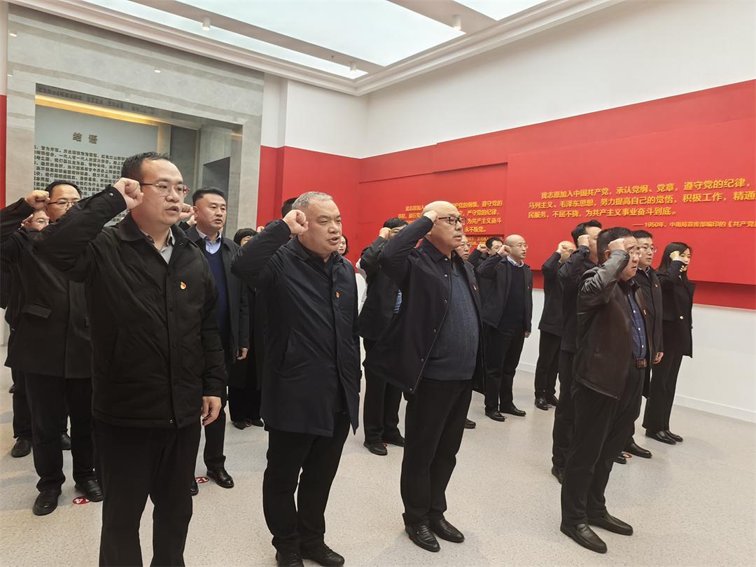 观展结束后,大家来到宣誓厅,面对鲜红的党旗庄严宣誓,一同重温入党誓词,重温党的初心与使命、重温对党的忠诚与承诺、重温党员的责任与担当。