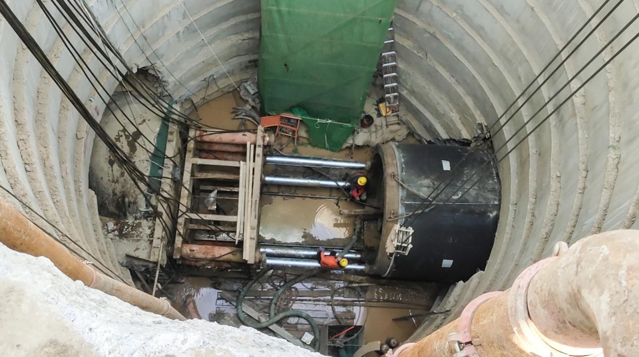 “泥水平衡顶管施工段贯通了!”