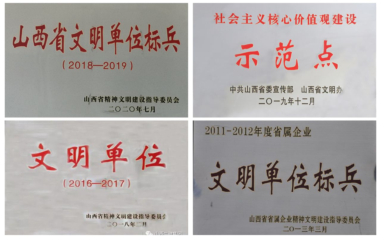 公司文明单位创建工作始于2002年,自此至2019年,连续17年荣获“省属企业文明单位标兵”光荣称号,2012年到2019年,四度蝉联“山西省文明单位”荣誉称号。多年来,公司党委始终坚持信念不动摇,咬定目标不放松,创新实干不懈怠,在精神文明创建上出品牌、出制度、出规范,载体有效、措施得力,在全体职工的精诚团结和共同努力下,收获全国文明单位硕果。