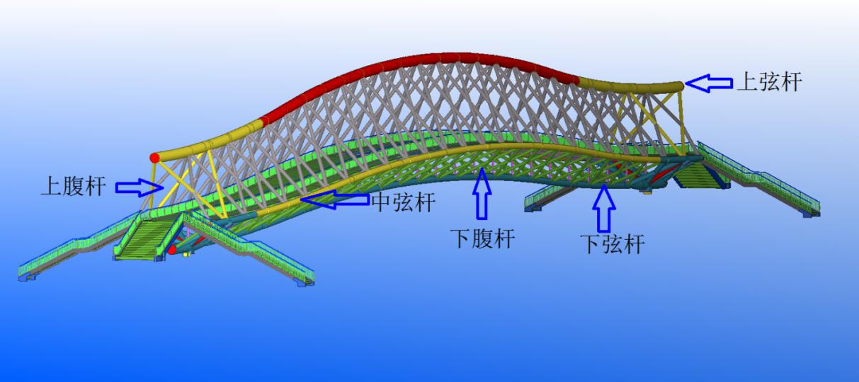该项目采用简支钢桁梁结构,桥梁单跨达123米,为国内景观人行桥之最,实施难度大。整个桥梁线形采用弧形曲线设计,桥梁宽度、高度不断变化,杆件繁多,现场高空焊接工作量大,多管相贯节点焊接工艺复杂,桥梁拼装精度及焊接变形控制难度大。