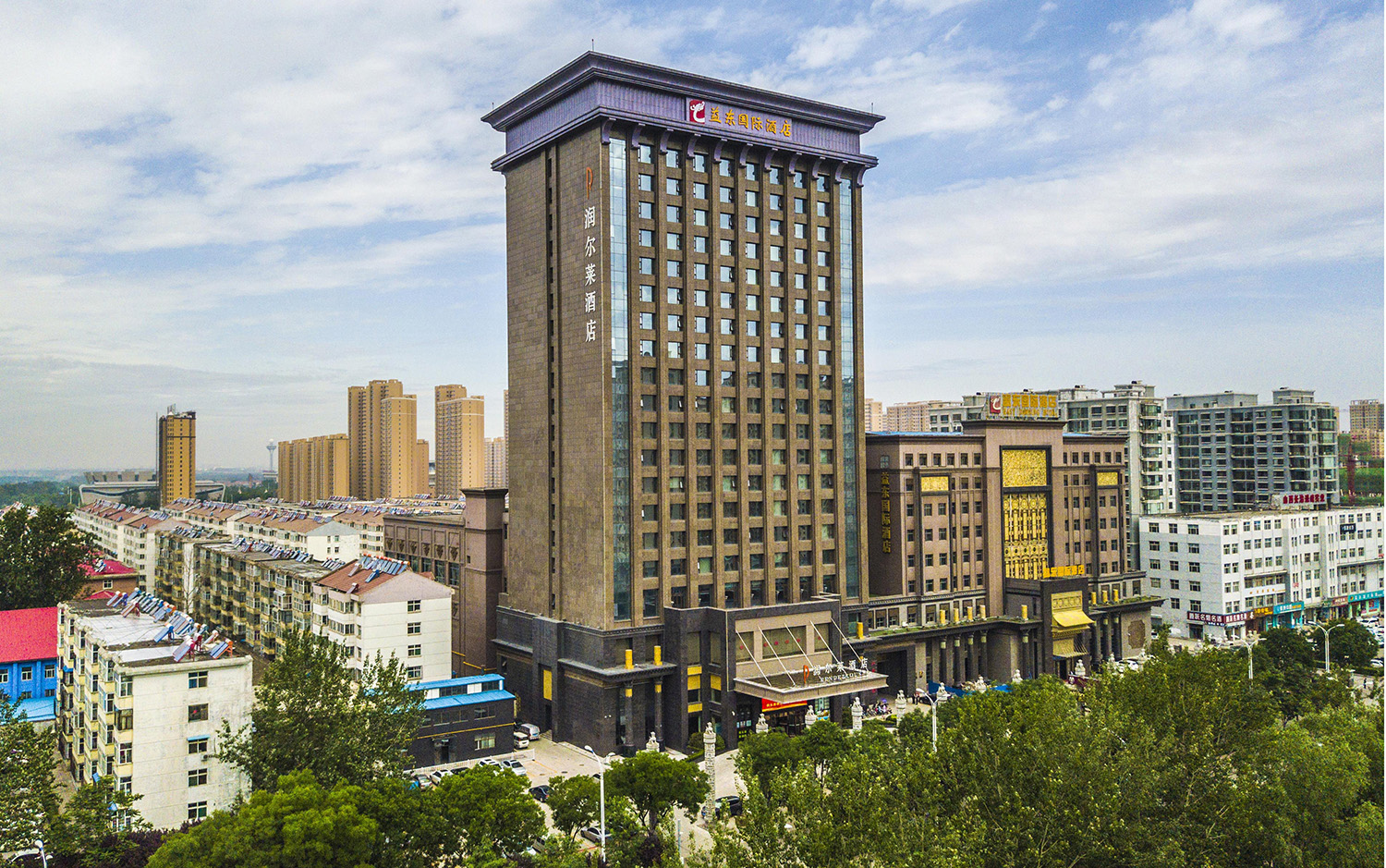 长治市益东国际酒店贵宾楼工程位于长治市西一环北路,总建筑面积24981.48平方米,建筑高度88.2米,呈框剪结构,地下1层、地上19层,是集住宿、餐饮于一体的豪华商务酒店。