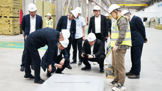 杨建荣一行深入公司装配式钢结构智能制造车间、高端金属围护结构智能制造车间、装配式钢结构办公生活区以及展示中心进行实地参观,详细了解公司在装配式钢结构、高端金属围护结构领域的装备优势、技术实力、市场开发、工程业绩等情况,对公司在推广装配式建筑及推动山西建筑产业转型升级等方面取得的成果表示赞许。