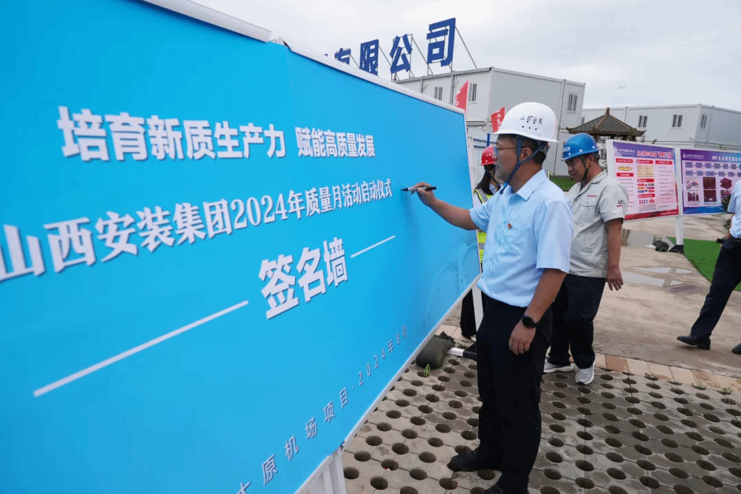 9月1日,山西建投安装集团在太原武宿国际机场三期改扩建工程机电安装项目部举办2024年“质量月”活动启动仪式。党委副书记、副董事长、总经理任锐出席并作动员讲话。总工程师梁波,山西省建设监理有限公司项目总监代表王树林,各基层单位相关负责人、项目部及劳务人员代表等110余人参加启动仪式。