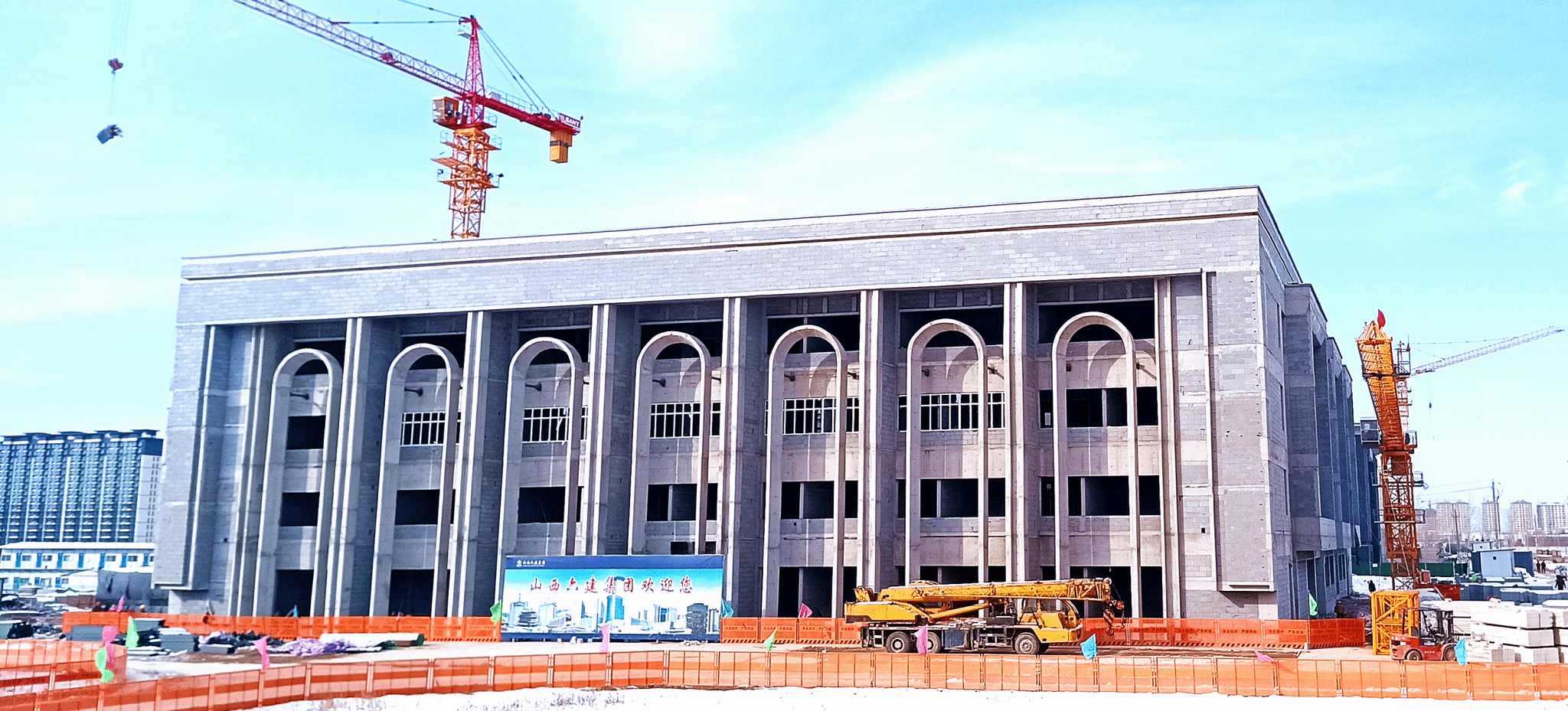 万荣中学迁建项目位于万荣县恒磁路以西,华康路以东。项目建筑面积87539.88平方米,共有8个单体建筑,可容纳3600名学生学习生活,建设内容包含建筑工程、装饰装修工程、装配式工程、电气工程、变配电工程、给排水工程、消防工程、报警工程、通风工程、燃气工程等。