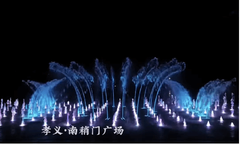 千年古城,流光再现,南稍门前,水舞翩跹。