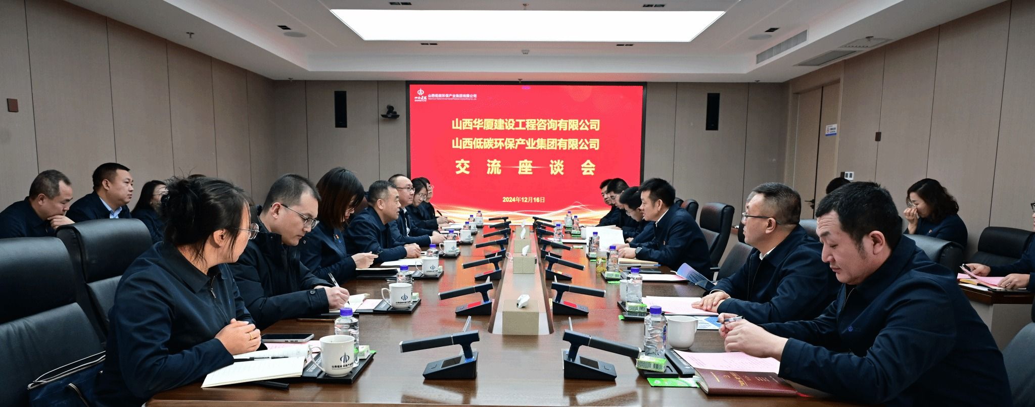 低碳环保集团副总经理李立峰,总会计师、工会主席张铁飞,总经理助理段海兵及相关中心负责人,华厦咨询有限公司党总支副书记、副总经理陈文梁及相关部门负责人参加会议。