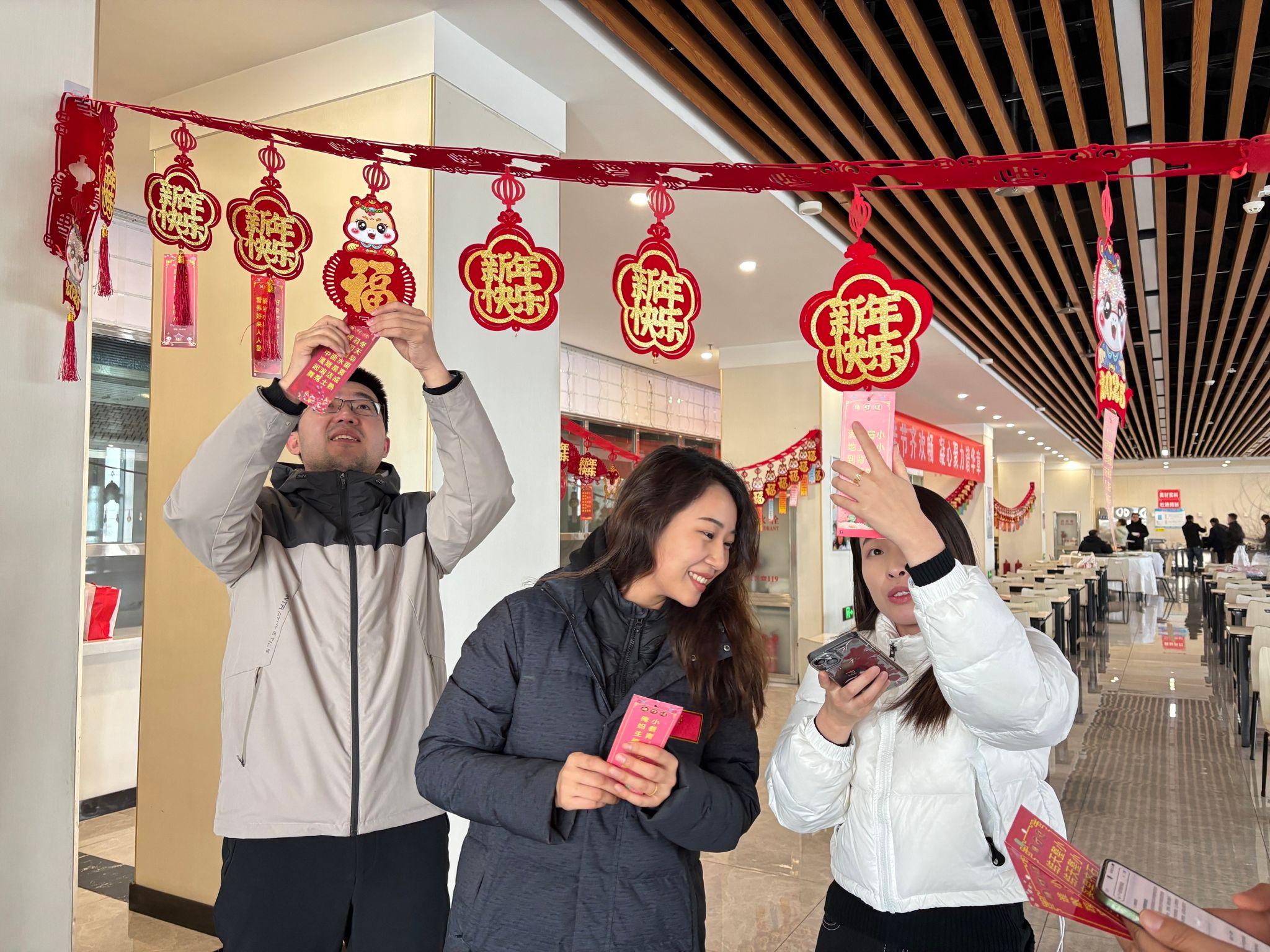 一条条彩带下悬挂着一道道妙趣横生的谜题,内容涵盖了历史文化、生活常识、历史典故、诗词歌赋等,职工们或驻足凝思,或互相讨论,现场欢声笑语不断,洋溢着欢乐祥和的节日气氛。此外,活动还特别准备了口味丰富的汤圆,让职工们在品尝美食的同时,共同感受传统文化的独特魅力,分享节日的喜悦与温馨。