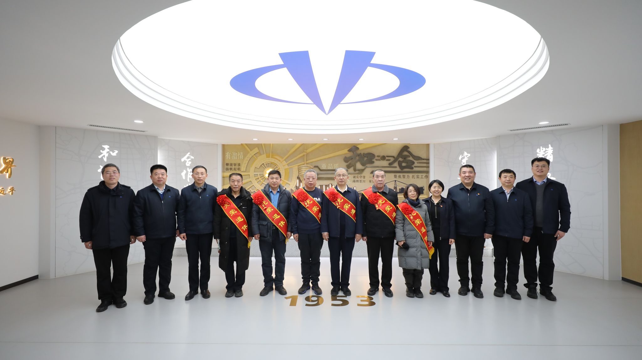 会后,三位领导为退休职工代表发放了退休纪念品,并合影留念。