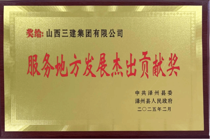 2月14日,晋城市泽州县人民政府授予山西建投三建集团“服务地方发展杰出贡献奖”,以表彰三建集团在泽州县地方建设中所作出的贡献。