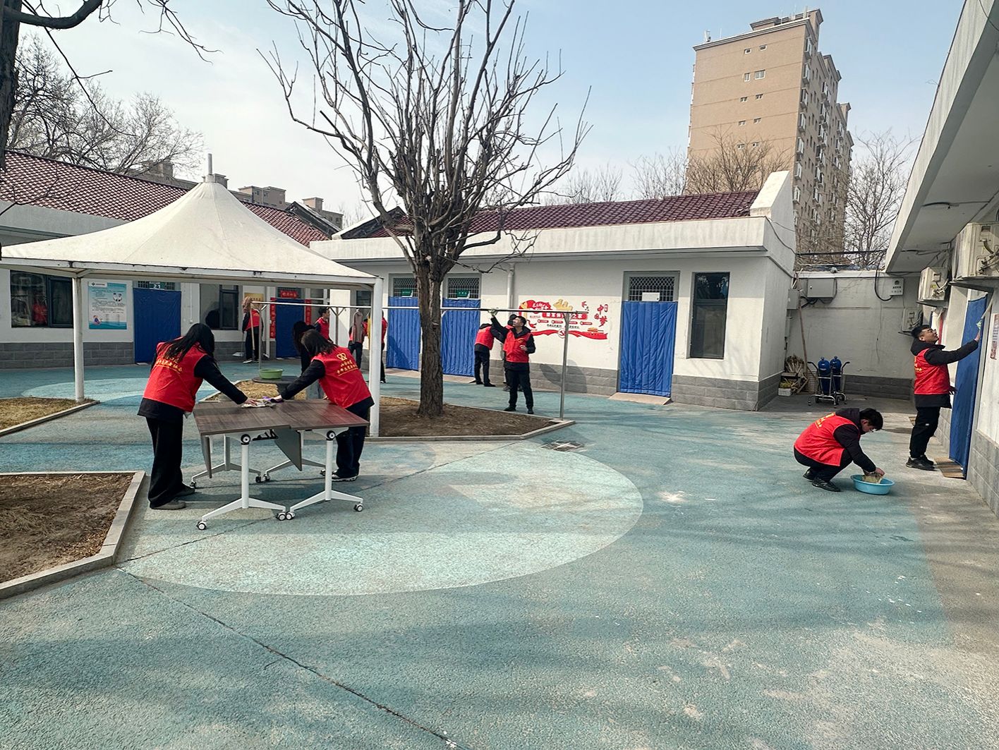 随后,志愿者们明确分工,默契配合,投入到紧张的卫生清理工作中。收拾杂物、扫地拖地、整理床铺、擦洗玻璃,大家精神饱满,干劲十足,对院内及房间各角落进行细致打扫整理,为军人同志们营造了整洁舒适的生活环境。