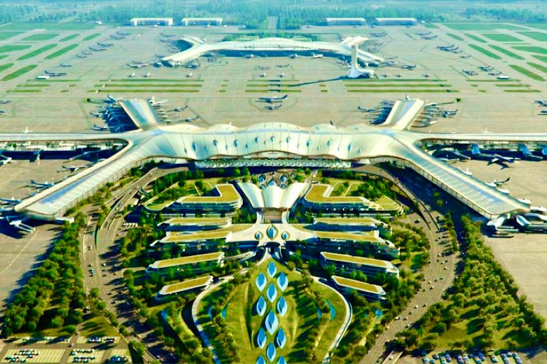 广州至湛江高速铁路珠三角枢纽机场站前工程位于广东省肇庆市高要区蛟塘镇西南侧2.5千米附近。该项目为明挖暗埋式地下车站,主站房位于地下二层,高铁和轨道交通平行,共6台14线,轨行区结构最大宽度164.8米,长505.5米,车站底板埋深26米。