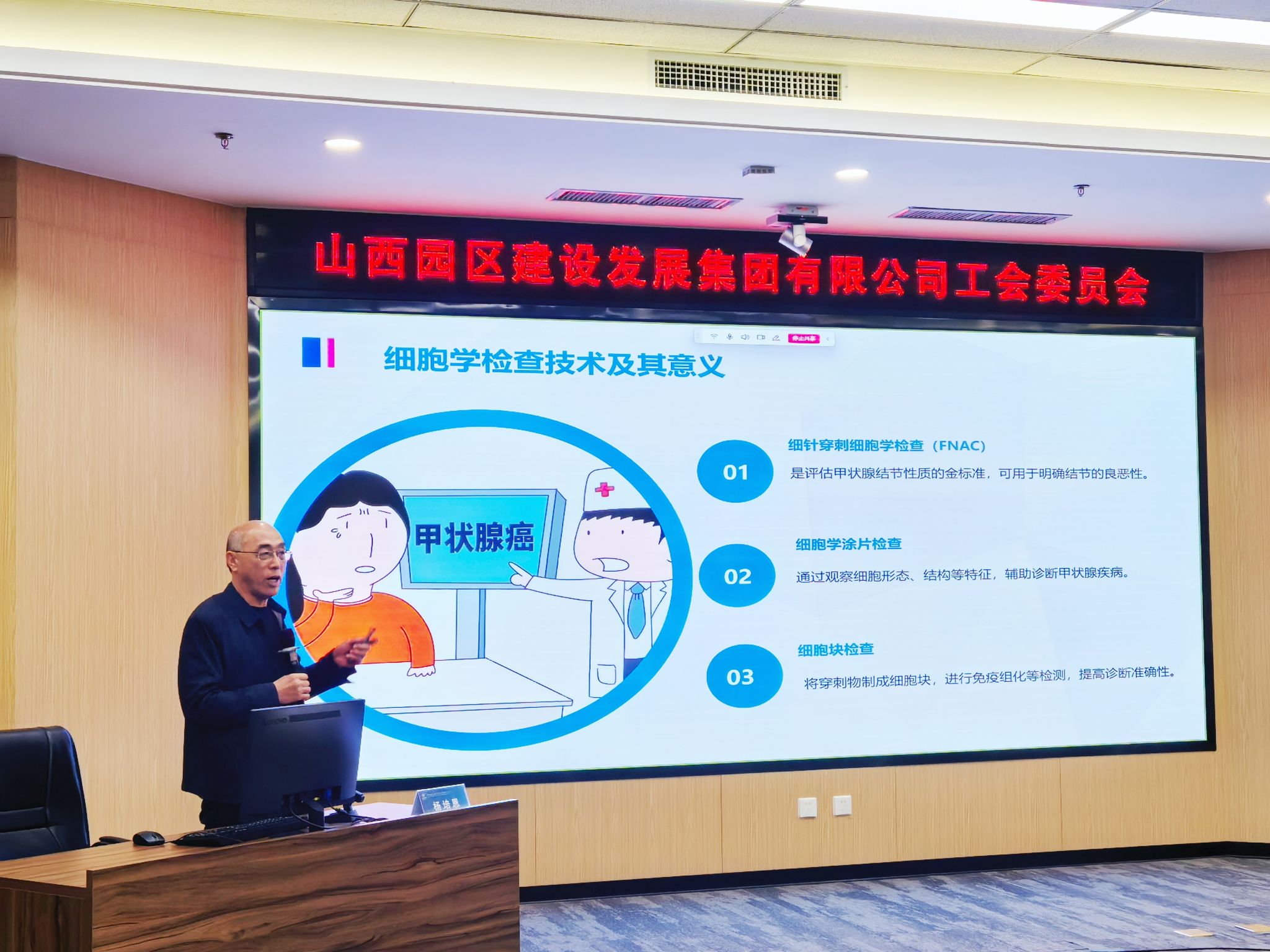 活动特邀太原煤气化职工医院院长杨培恩从病症概述、辅助检查、鉴别诊断到预防治疗4个方面,对甲状腺结节、肺结节和乳腺结节等方面疾病进行全面且通俗易懂的讲解,帮助女职工掌握科学的预防和治疗方法。