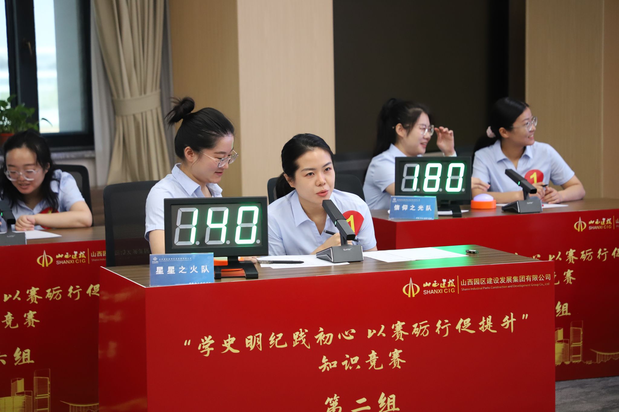 本次竞赛分为初赛和决赛两个阶段,由集团各党支部选送的8支代表队16名选手参赛。比赛集知识性、竞争性为一体,内容紧扣党史知识,通过个人必答、小组共答、抢答和风险答题等环节,全方位、多层次考验选手们的理论功底、知识储备与临场应变能力。现场,参赛选手们个个反应敏捷、回答踊跃,气氛紧张热烈,充分彰显了新时代园区建发人良好的团队协作精神和昂扬进取的奋斗姿态。经过多轮紧张激烈的角逐,最终红旗先锋队获得一等奖,信仰之光队获得二等奖,时代答卷人队获得三等奖,敢想敢做队获得优秀组织奖。