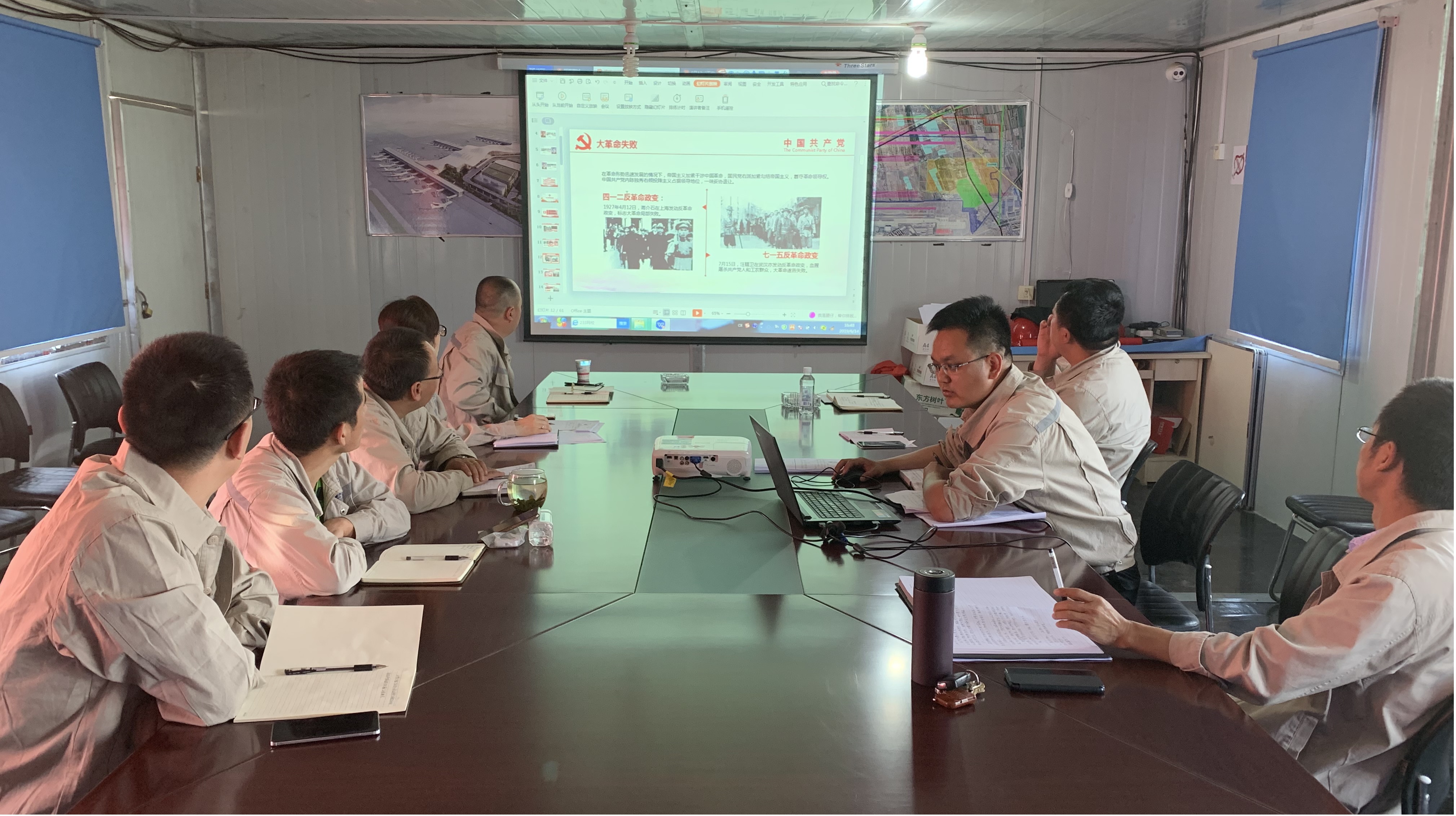 第五工程公司党支部书记李万福在大连基地党建办公室讲党课