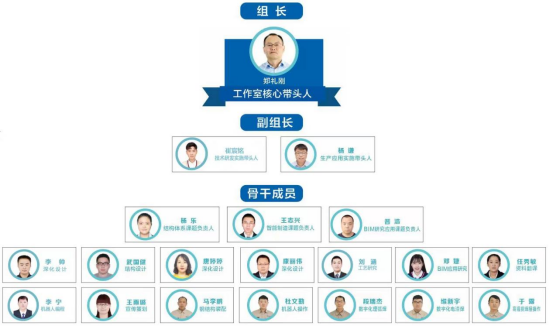 工作室以中国钢结构协会、中国建筑金属结构协会专家、公司总工程师郑礼刚命名,团队平均年龄31岁,研究生占比达42%,形成了一支包含深化设计、生产工艺、质量管理、BIM技术应用、检测试验、设计研发的技术团队,涵盖研发、设计、制造、施工、检测装配式钢结构全产业链人才。