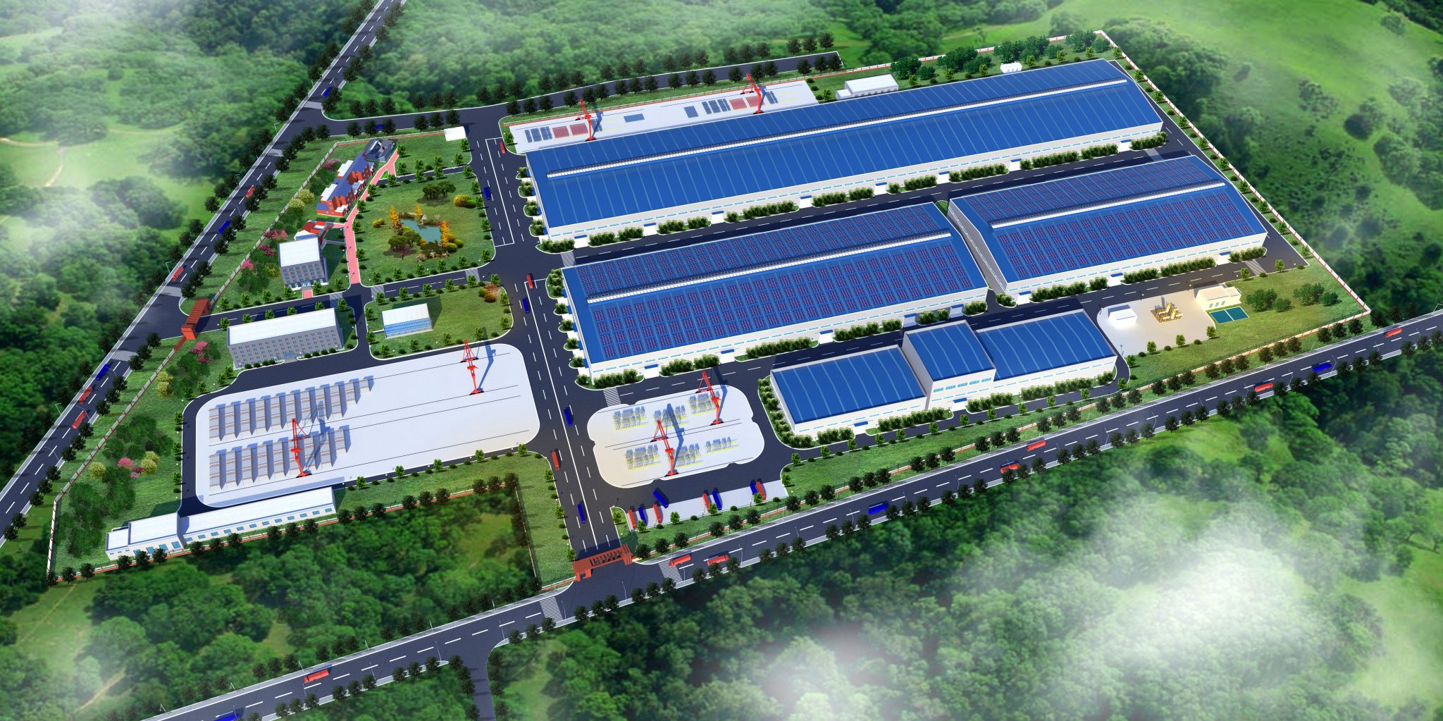 晋东南园区位于高平市三甲工业园区,计划总投资12.5亿元,规划用地500亩,主要发展混凝土构件、钢结构构件、固废再生业态。主要产品包括商品混凝土、装配式混凝土部品部件、钢结构构件、风电塔筒、模块化房屋等。叠合板生产线钢筋生产线综合生产线混凝土搅拌站钢结构生产车间钢结构生产线